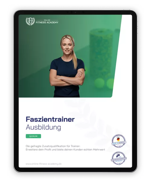 Für die Faszientrainer Ausbildung online musst du mindestens 18 Jahre alt sein. Du benötigst gute Deutschkenntnisse auf mind. B2-Niveau und eine gute Internetverbindung. Erforderlich sind trainingswissenschaftliche und methodisch-didaktische Grundkenntnisse (z. B. durch den Erwerb der Fitnesstrainer B-Lizenz oder vergleichbarer Trainerscheine). Zudem sind erste Erfahrungen in der Erstellung von Trainingsplänen und in der Trainingsanleitung von Personen und Gruppenteilnehmern obligatorisch – beispielsweise durch die Tätigkeit in einer Fitness- oder Gesundheitseinrichtung. Für die Übungen in deinem Kurs benötigst du eine Faszienrolle und einen Faszienball.