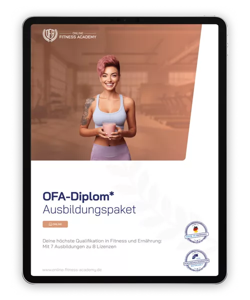 Unser OFA Diplom* bietet alles, was du brauchst, um dich in den Bereichen Fitnesstraining und Ernährungsberatung vollends zu qualifizieren. Mit umfassenden Lernmaterialien, interaktiven Übungen und praktischen Aufgaben bist du bestens auf deine zukünftige Karriere vorbereitet.
