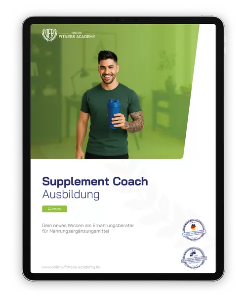 Möchtest du dich im Vertrieb für Nahrungsergänzungsmittel positionieren oder als Fitness-, Personal Trainer oder Ernährungsberater neues Wissen anwenden, bietet dir die Supplement Coach Online Ausbildung die ideale Voraussetzung. Du sicherst dir eine Menge an Spezialwissen und setzt auf eine gefragte Zusatzqualifikation – melde dich gleich an und hol dir dein anerkanntes Zertifikat!