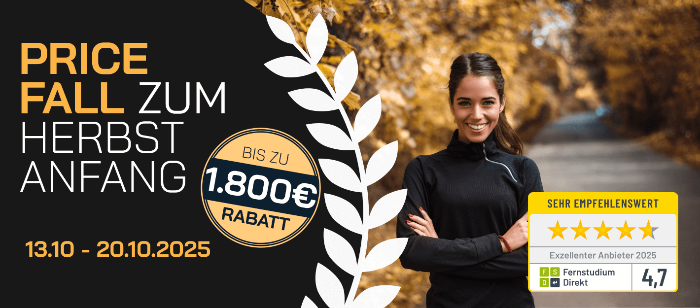Spare bis zum 20.10.2025 bis zu 1.800 € und werde lizenzierter Fitnesstrainer, Personal Trainer, Pilates Trainer oder Ernährungsberater!